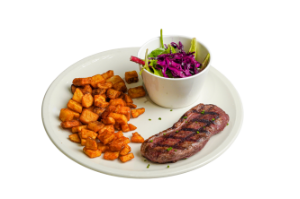Marinated chicken breast with fresh house salad and choice of roasted vegetables, quinoa, or home fries$24.99