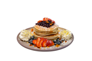 Four pancakes with berry compote, strawberries, blueberries, whipped cream, edible flowers, confectioner’s sugar, pure Canadian maple syrup$23.99