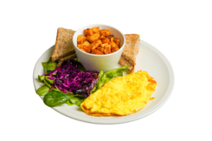 Three farm-fresh eggs with spinach, caramelized onions, tomatoes, mushrooms (Add cheese for +$1.99)Note: Vegan options available